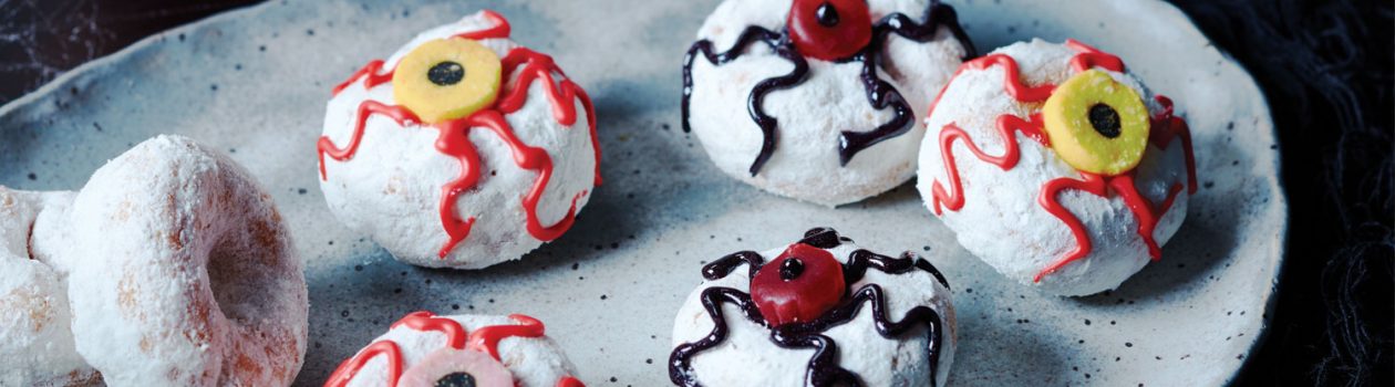 Mettre une réglisse au centre des 6 beignes dont les veines sont rouges.