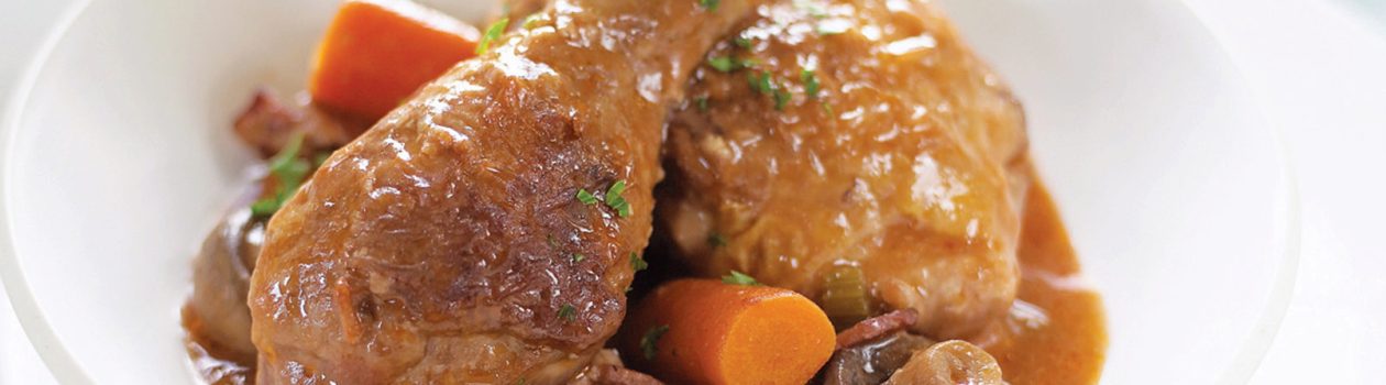 Au fouet, mélanger le vin, le bouillon, la pâte de tomates, l'ail et le reste de la farine. Transférer le mélange ainsi obtenu à la poêle et le porter à ébullition avant de le verser dans la mijoteuse. Couvrir et faire cuire à feu DOUX pendant 5 heures ou jusqu'à ce que le poulet soit complètement cuit. Servir avec le persil.