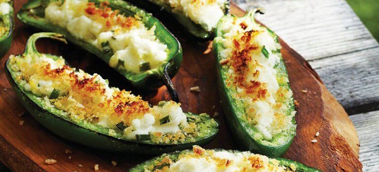 Déposer les piments farcis, la garniture vers le haut, sur la grille du barbecue préchauffé à intensité moyenne-élevée. Fermer le couvercle et griller jusqu’à ce que le dessous des piments soit légèrement noirci et que la chapelure soit dorée, de 8 à 10 minutes.