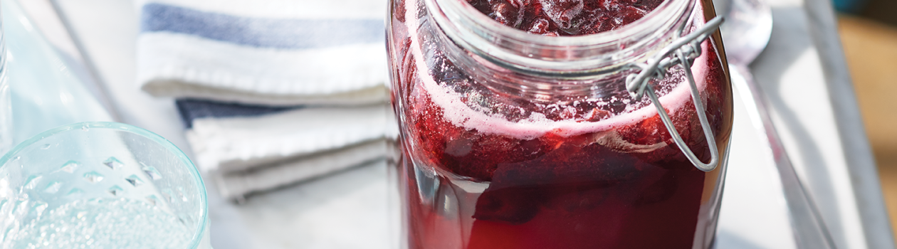 Ajouter le vinaigre. Remuer le pot pour dissoudre le sucre. Couvrir et réfrigérer de 1 à 3 jours. Bien mélanger. Verser la préparation dans un pot propre. Mettre le couvercle et conserver au réfrigérateur jusqu’à trois mois. Jeter le shrub si de la moisissure apparaît ou qu’une odeur de moisi se développe. Pour le savourer, mélanger le shrub avec de l’eau pétillante ou de l’eau de source, des jus de fruits, du mousseux, de la bière ou des cocktails.